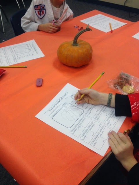 Today we used our science and math skills to estimate and find actual measurements of pumpkins! We looked at height, weight, circumference, whether our pumpkins would sink or float in water, and how many seeds were inside.
